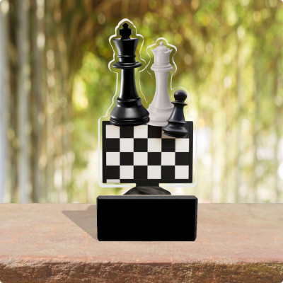 Originelle und lustige Schachtrophäe, inspiriert vom klassischen Holzschach, hergestellt aus hochwertigem Acryl und Farbe.