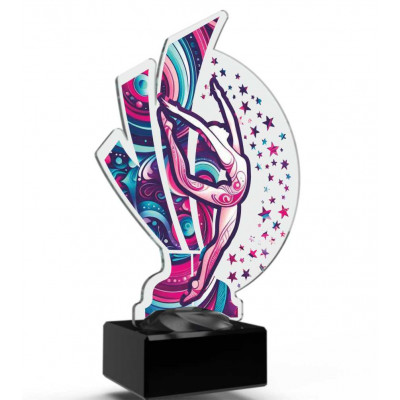 Trophäe aus digital bedrucktem Methacrylat mit einem Kostüm-Motiv.