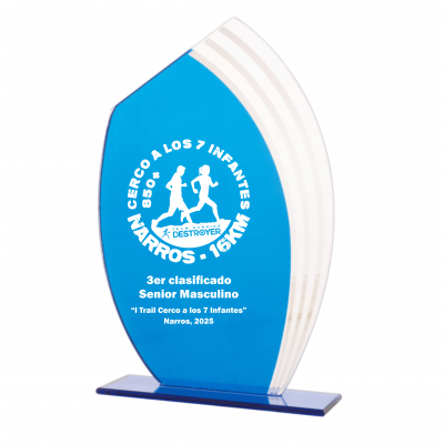 Trofeo cristal azul Rox, perfecto para grabar a laser textos, logotipos, etc Material: cristal transparente-azul ancho 0,5mm Grabación y diseño incluido. Guarda los textos y logotipos realiza la compra y nos pondremos en contacto para mandarte un diseño previo al grabado. Preparación: 3-4 días