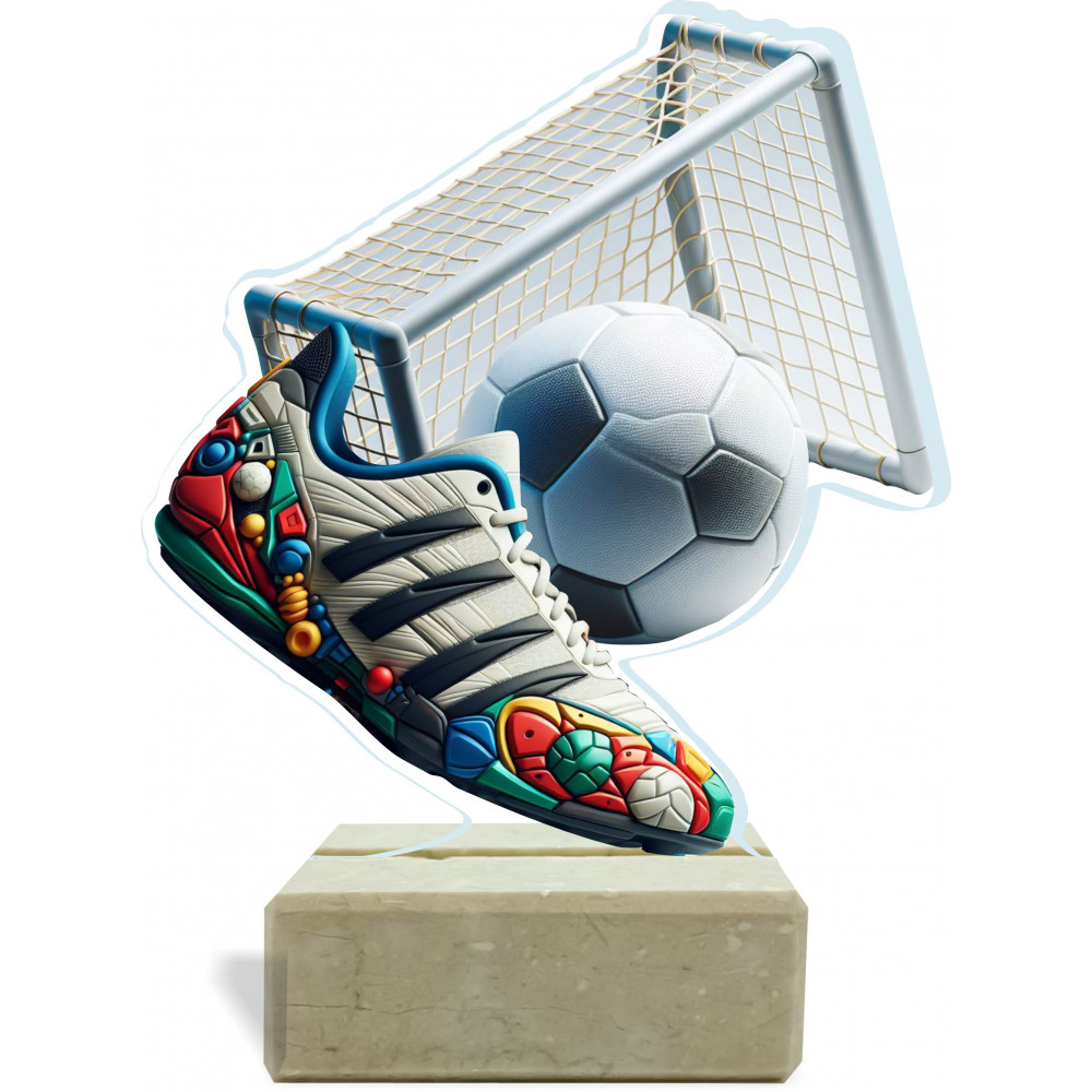Circulinox-Trophäe mit Fußballmotiven. Größe: Quadratischer Marmorsockel. Die Höhe ergibt sich aus der Basis. Material: Edelstahl-Marmor. Gravuren...
