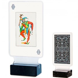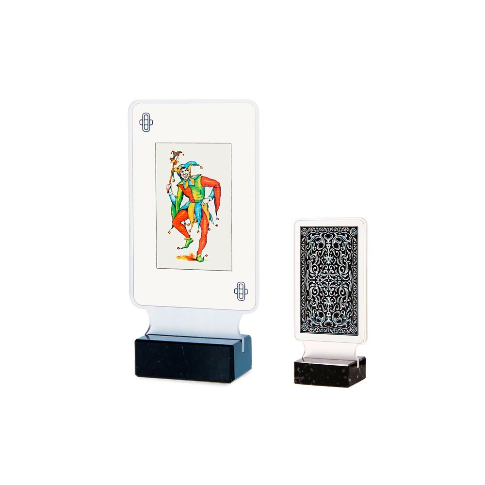 Trofeo de diseño inspirado en los juegos de baraja. Realizado para verse la delantera y trasera de la baraja. Material: Metacrilato - Mármol....