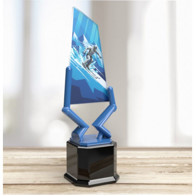 Trofeo exclusivo de estética de esqui contemporáneo, diseñado para destacar el esfuerzo y la excelencia. Su silueta en forma de montaña simboliza el espíritu deportivo y la pasión por el equi. Fabricado con materiales resistentes y una base sólida que aporta presencia y durabilidad. Un reconocimiento memorable para campeones y futuros talentos de la pista.