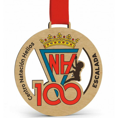 Medalla Ecológica sostenible con el medio ambiente. Fabricada en madera con grabado a color personalizado y cinta incluidos en el precio. Mándanos...