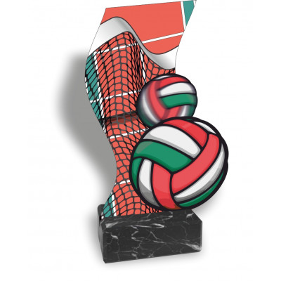 Reconoce el esfuerzo, la energía y el espíritu de equipo con este trofeo de vóley, una pieza moderna y elegante perfecta para premiar a los mejores jugadores y equipos.