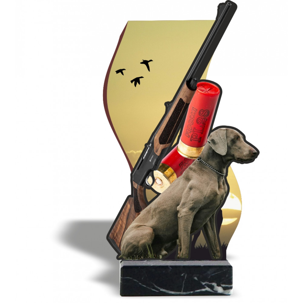Trophée en méthacrylate imprimé numériquement avec un motif de déguisement.