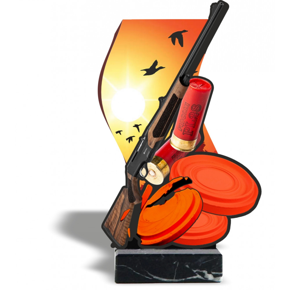Trophée en méthacrylate imprimé numériquement avec un motif de déguisement.