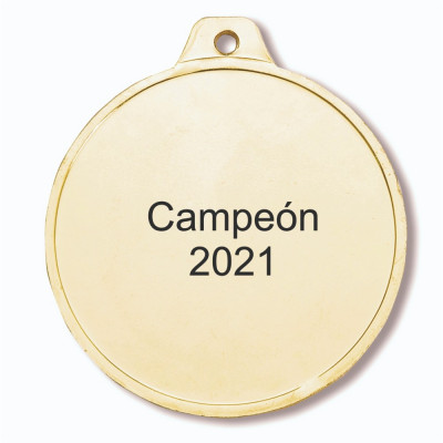 Medaglia d'oro di 5 cm di diametro con un disco centrale di 2,5 cm per includere lo sport o il logo. Incisioni incluse: nel disco centrale con...